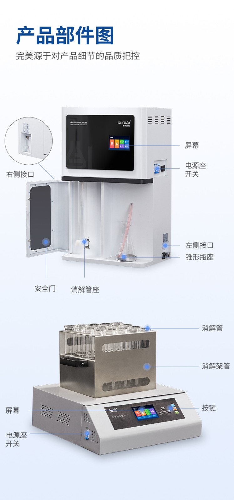 依照国家标准方法,采用化学、物理学、嵌入式微机自动化机电控制原理设计,对食品、粮食、农作物、饲料、肥料、土壤、水等物质中氮、蛋白质含量进行测定。