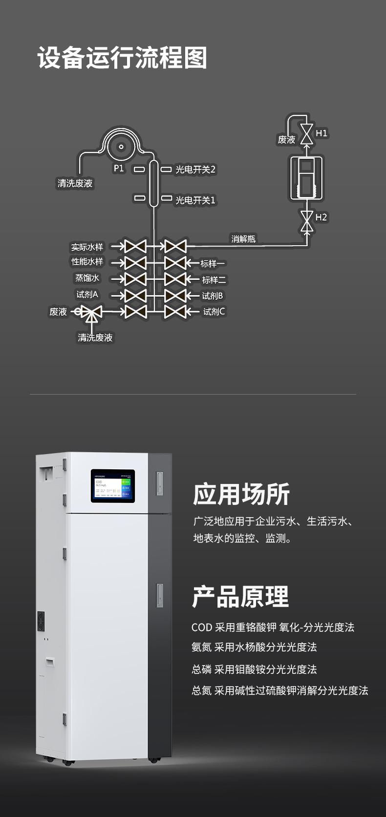 应用于企业污水、生活污水、地表水的监测。